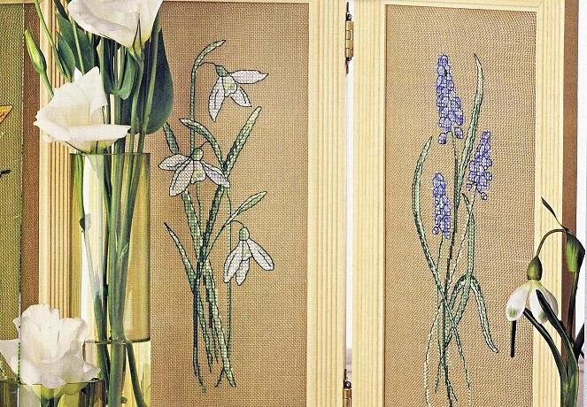 Три мотива из любимых весенних цветов - крокусов, подснежников и гиацинтов, будут особенно гармонично смотреться на канве натуральных пастельных тонов.